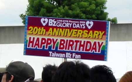 《ハードロックカフェ横浜》2日目の12時過ぎに行きました。既にB'zファンは大勢来ていましたが、PV等が流れる気配は全くありませんでした。と思ったら、13時半を過ぎて、「B'z The Best “ULTRA Treasure”」 の特典DVD (SHOWCASE in ZEPP TOKYO) が流れ始めました。お昼を食べに来ていた、B'zファン以外のお客さんが引くのを待っていたようです。お酒が入っていないので、店内はそれほど盛り上がりませんでしたが、気持ちは十分盛り上がりました。《Taiwan B'z Fan》初日のグッズ行列の中に見えていました。持っていたのは、20代後半ぐらいの体格のいい男性。日本在住なのか、それとも、わざわざ台湾から来てくれたのか(^^)お仲間もいたのかどうかは確認できませんでした。《お花》 たくさん来ていました。なぜ 『少年サンデー』 から?と思ったら、会場内から見た友達が、「『コナン』 のスタッフからも来ていた」 と教えてくれました。《会場配布物》『GLORY TIMES』 と一緒に、9月17日に読売新聞に掲載された 「B'z The Best “ULTRA Treasure”」 の見開き両面広告。そして、これが配布されました。こちらも見開き両面です。19日、朝日新聞に掲載された、『B'z8808』 の広告と並べてみました。最大の違いはカラーだということ。「“ULTRA Treasure”」 の方は、広告自体は新聞に掲載されたものと同じですが、欄外には 「読売新聞」 とあるだけで、日付が入っていません。配布用に印刷されたもののようです。大型CDショップでも配布されていました。《タオル》 7色コンプリート!ただ、赤は自力では手に入れられず、友達に交換してもらいました。色は、会場によってかなり色合いや濃さが違っていました。左が神戸、右が日産の青です。前にもお話ししたかもしれませんが、かなり色落ちするので、洗濯の際はご注意ください。《誘導員さん語録》小机駅に向かう人たちは、改札口への階段を挟んで、ふたてに分かれるように誘導されました。スタジアムに遠い側で、初日に人波を誘導していた係員さん。「もっと前の方に詰めちゃってくださーい」50代ぐらいの男性です。同じ人がどうかは確認できませんでしたが、2日目の人は、「詰めちゃ…」 で口をつぐみました(笑)ところで、初日にBREAKERZが来ていたそうですね。「Brotherhood」 の復刻Tシャツを見て、勘違いしちゃわないといいんですけど。「B'zがまねしてくれた!v(^^)v」 とか(笑)BREAKERZがビーイング系なのはご存じですか?ミュージックフリークにも、去年の暮れ以降、頻繁に載っています。ちなみに、DAIGOさんって、もう30歳なんですね。5年近く前、まだインディーズだったころに 「めざましテレビ」 に出演しているので、結構キャリアは長いようです。