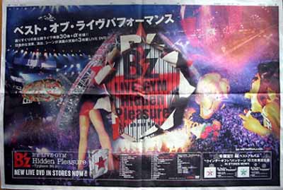 今日の朝日新聞朝刊に、「B'z LIVE-GYM Hidden Pleasure ~Typhoon No.20~」 の見開き全面広告が載っています。10月の発売発表時に一度載ったので、今回はないかと思いましたが、あって嬉しいです。今年は本当に新聞広告が多いですね。写真は、昨日、ハチ公広場で風船を配布していたステージに飾られていたパネルと同じです。
