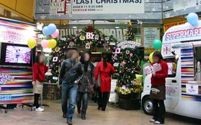 2003年、B'z LIVE-GYM 2003 “BIG MACHINE” に合わせて設置された”B'zツリー” です。 ここまでは、シティマップ の、「東京ドームシティアトラクションズ (赤)」 内に設置されていました。このころは、「Bear」 づいてましたね。 これは、シティマップ右奥、「ラクーア」 内。イベントスペースのようなところで、サンタの下はステージになっています。