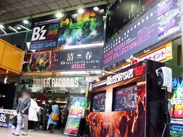 《タワーレコード渋谷店 外壁看板》6/5 リリース 「熱き鼓動の果て」7/3 リリース 「GREEN」10/9 リリース 「志庵」11/27 リリース 「a BEAUTIFUL REEL.」12/11 リリース 「The Ballads ~Love & B'z~」