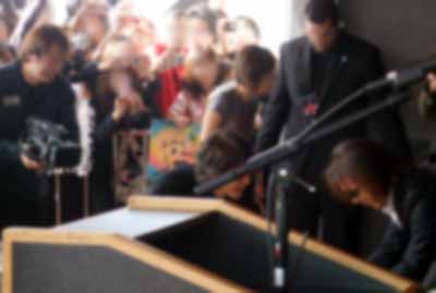 「ACTION」2007年12月23(日) FMヨコハマ パーソナリティーは 駒村多恵さん駒村 じゃ、どうでした? こう、手形を刻印した瞬間っていう。稲葉 不思議な感じ、です、ねー。駒村 稲葉さん、結構、フ~って感じで、ちょっと後ずさりましたよね、あの時。稲葉 あ、そうですか?駒村 ちょっと、映像を拝見していると。稲葉 ああ、手を取るときですか?駒村 手ぇ取って。稲葉 どんなだった? (松本さんに聞いたような…)駒村 なんとなく、「おぉ~」。稲葉 僕、見てないんですけど(笑)、映像…。駒村 ほんとですか?(笑) ちょうどあたし、情報番組で。稲葉 はい(笑) あ、そうですか、はい。駒村 放送してたんですけども、「あ、稲葉さん、すごい、後ずってる」 と思って観てたんですけど、どんな心境だったんですか?稲葉 ど…。駒村 刻印した瞬間っていうの。稲葉 刻印した瞬間はですねえ(笑)駒村 ええ。稲葉 えー、…っていうよりも、その後、あの前で手を洗ったのが、ちょとあんま、カッコよくないなと思った…(笑)駒村 アハハハハッ松本 あれ、すごい、んね。稲葉 なんで、あそこまでさあ、やって。松本 うん。稲葉 みんなの前で手ぇ洗うんだ。 しかも、しゃがんで洗うんですよ。駒村 ハハハハッ!松本 そうそう。稲葉 アレ? それ、映ってました?駒村 それは切れて…(笑)稲葉 あ、よかったぁ。駒村 切れてます、切れてました(笑)松本 うーん。駒村 うん。 こう、ワーッてやって、ワーッ、パチパチパチ~、まで。稲葉 で、やる~じゃないですか。駒村 はい。稲葉 で、手を挙げて写真撮ってもらって。駒村 はいはい。 そこまで映ってた。稲葉 そこまで。駒村 はい。稲葉 あの後はですね、あ、じゃあ、手も真っ黒なんで、ここの。 いわゆる、プラスチックのバケツみたいなヤツがあって、「ここで手洗ってください」 って(笑)、それをみんなの前でやるんですよ、しゃがんで。駒村 (笑) もんのすごい、人、いっぱいいましたよねえ。稲葉 見てるんですよ、それ。駒村 ファンの方とか、すーごい数で。稲葉 で、それ、写真撮られてんですよ。駒村 ハッハハハハ稲葉 で、やりながら(笑)、「これ、なんか、ほかにアイデアないのかな」 と。松本 なあ。稲葉 ちっちゃい声で言いながらやってたんですけど(笑)駒村 (笑) 松本 赤いじゅうたん敷いてさ、あそこまでやっといてさあ。稲葉 そうなんです。松本 「これえー?」 みたいな。駒村 あんなプラスチックの(笑)松本 うん。稲葉 ええ。松本 そこも、マスコミの人たちもねえ、たくさんいらっしゃって、もう。駒村 ほぉーんとですか(笑)松本 うん。 あの辺がこう、アメリカっぽいよね。駒村 すごいですね(笑)松本 うん。駒村 日本じゃ、ないですね、それは(笑)松本 うーん。駒村 おもしろい。 そんなことがあったんですね。松本 うん。駒村 じゃ、そっちのほうが、なんか、印象としては(笑)松本 だから、手洗ってるとこは、そういう、あの、報道とかは、映ってるのはなかったんですね。駒村 なかったです、なかったです。松本 僕ら、一切観てないんでぇ。駒村 あ、ほんとですか。松本 ええ。駒村 皆さん、ワーッて刻印をして。松本 ええ。駒村 でぇ、手ぇ挙げてえ、ワーッてなってて、パチパチ、「すごい、すごーい」 ってみんなが言ってるところで。稲葉 そのあとがすごかったんですよ、ほんとは(笑)松本 むふふふ駒村 アハハハハ松本 そうだね(笑)稲葉 ええ(笑)松本 うん。駒村 美しく終わってましたから。稲葉 はい、そうですか。駒村 そうです(笑) あ、ほんとですか。稲葉 ええ。駒村 おもしろいなー。 え、でもそういう、いろんな体験ができていいですねー、なんか(笑)松本 (笑)稲葉 うん(笑)駒村 楽しい。撮られてますねえ(笑)写真は友人が撮ったものです。左側にいるカメラマンさんも笑ってます(^^;)