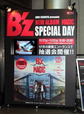 東急東横店、ハチ公口側の壁面に 「MAGIC」の巨大広告。 センター街の街灯にはフラッグが飾られて、「MAGIC」 の収録曲が流れています。 またタワーレコード店頭には 「B'zプリクラ」 が設置されています。
