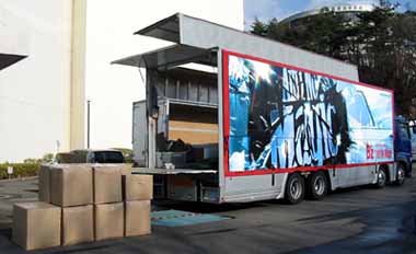 まだご紹介していなかった写真、ライブ中のエピソード、その他こぼれ話などを会場毎に補足していきます。まずは、福島で撮ったツアートラックの写真です。この日は、今年、私が参加した公演の中でいちばんいい天気でした。ホール公演は雪の多い地域、そしてドーム公演はあまり天気に恵まれなかったので、今回のツアー全体を通しても、数少ない好天だったかもしれません。グッズ搬入中 ツアートラックのボディを通して、向こう側に別のツアートラックが見えるという、ちょっと珍しい光景。 その、別のツアートラックが↓これです。 ナンバー 69。 機材搬入中の178 178 & 69 トラック荷台内部積んである機材のメモが貼ってありました。 今回からグッズ売場にポスシステムが導入され、ツアーロゴ入りのレシートがもらえるようになりました。ただドーム公演の入場後の売場では、従来どおり電卓のところもあったそうです。当然、電卓ではレシートは出てきません。そういう売場でしか買わなかった方は、こんなレシートがもらえることを知らないまま終わってしまったのかもしれません。
