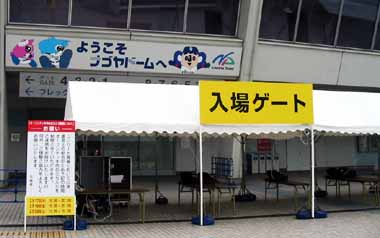 SS席専用入場口 SS席専用入場口のセッティングは、大阪がいちばんきっちりしてたような気がします。足元にはこんなマークまで。 私だったら絶対、この足のマークに合わせて立とうとしますね(^^;)こちらはガラスに貼られていた注意書き。 そしてこちらは、ゲート左横の壁に貼られていた、読みづら~~い注意書き。間近によってマジマジと見ないと、なんて書いてあるのか全く分かりません。 初日の12時頃、この14ゲート前を通りかかると、中から音が聞こえてきました。まだ何もセッティングされていなかったので、ガラスにへばりついたら、稲葉さんの歌声が聞こえてきました。リハーサルかと思いましたが、それにしてはなんだか音程がずれてる。よく聴いたら、聞こえているのはコーラスの最高音部だけ。サウンドチェックで同期 (ライブ中に生で出している以外の、コーラスやギター、その他の楽器の音) を流してたんです。それに考えてみたら、そんな早い時間にリハーサルをするわけありませんでした。リハーサルの時間帯にも行ってみましたが、写真のように既にセッティングされ、スタッフもたくさんいたので、ガラスにへばりつくわけにはいきませんでした(笑)京都の友人の話では、大阪ドーム内のレストランはリハーサルの音がよく聞こえるので、それ目当てで行く人も多いそうです。大阪ドームの中で食事したことはないので、今度は行ってみようかな (^^ゞちょっと前、「サポートメンバーのコーラスにはタネもシカケもありませんよね」 というコメントを頂いた時、「ないと思う」 とお応えしましたけど、同期という 「シカケ」 はありました(笑)ところで、最終日のアンコール前だったか、斜め後ろから 「新興宗教みたいだね」 という声が聞こえてきました(^◇^;)男性で、声の感じでは40代ぐらい。同伴者の方の反応は聞こえませんでしたが、そう思うのも分からないではありません。稲葉さんいわく、「特殊な集会」 ですから(笑)