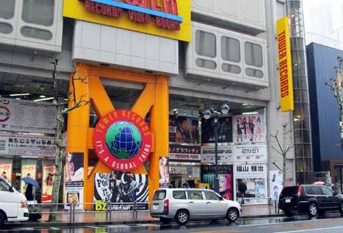《タワーレコード渋谷店 店頭Day》2012/04/04 リリース 「GO FOR IT, BABY -キオクの山脈-」 ぬれてシワが寄ってしまったように見えますが、この写真を撮った3日の14時頃、まだ雨は降っていませんでした。これは、ぬれても大丈夫な加工が施されているのではないかと思います。この十数分後、渋谷でも雨が降り始めました。発売前にCMや公式サイトでサビだけ聴いていたとき、ある歌詞が 「シートに詰めたら」 と聞こえました。でも、「シートに詰める」 っていうのは変なので、聞き違いだろう。本当はなんに詰めるんだろう、と思っていましたタワレコの店内でかかっているのを聴いて、本当はなんだったのか分かりました。「じっと見つめたら」 でした。話はそれますが、タワレコ前にあった電話ボックスがなくなりました。この写真は去年の4月です。この方向から店頭DAYの端から端までが全部入った写真を撮るには、この電話ボックスのあたりから撮る必要があったので、正直、ちょっと邪魔に思っていました。でも、ロンドンかパリの街角にでもありそうなおしゃれな電話ボックスでしたし、なくなったとなるとちょっとさみしい気がしました。