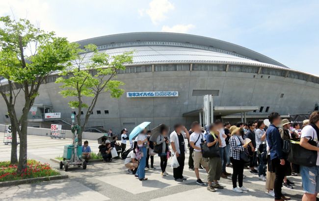 B'z LIVE-GYM Pleasure 2018 -HINOTORI-7/14(土), 15(日) 宮城 セキスイハイムスーパーアリーナセキスイハイムスーパーアリーナ手前はCD売場の、発売イベントが行われたバリーのアルバムを購入する方たちの列です。サブアリーナとグッズ行列 初日12:47グッズ行列 初日15時台行列は最長時、サブアリーナの隣にあるプール棟の横の坂を上がりプール棟の裏手まで延びました(いちばん奥がスーパーアリーナ、真ん中がサブアリーナ、右端がプール棟)ちなみにこちらは、スーパーアリーナの裏手建物の右端が入場口です。"LIVE DINOSAUR" のとき、この辺はこんな状態でした。アリーナ席の仮設トイレ、上の写真の左端あたりです。真ん中の空いている部分が、アリーナ席との通路です。グッズ売場 初日12:53バーミリオンカード専用売場の行列、最後列 初日12:54ガチャガチャ売場 初日13:17ガチャガチャ売り切れ 2日目15:17売り切れたのは15時過ぎでした。入場口バリーのアルバム発売イベント入場口に向かう途中です。ツアートラック 833並んでいるトラックの、人が集まっているところに「178」が置いてありました。2日目終演後バリーのアルバム発売イベントが行われたところも、退場口として使用されていました。