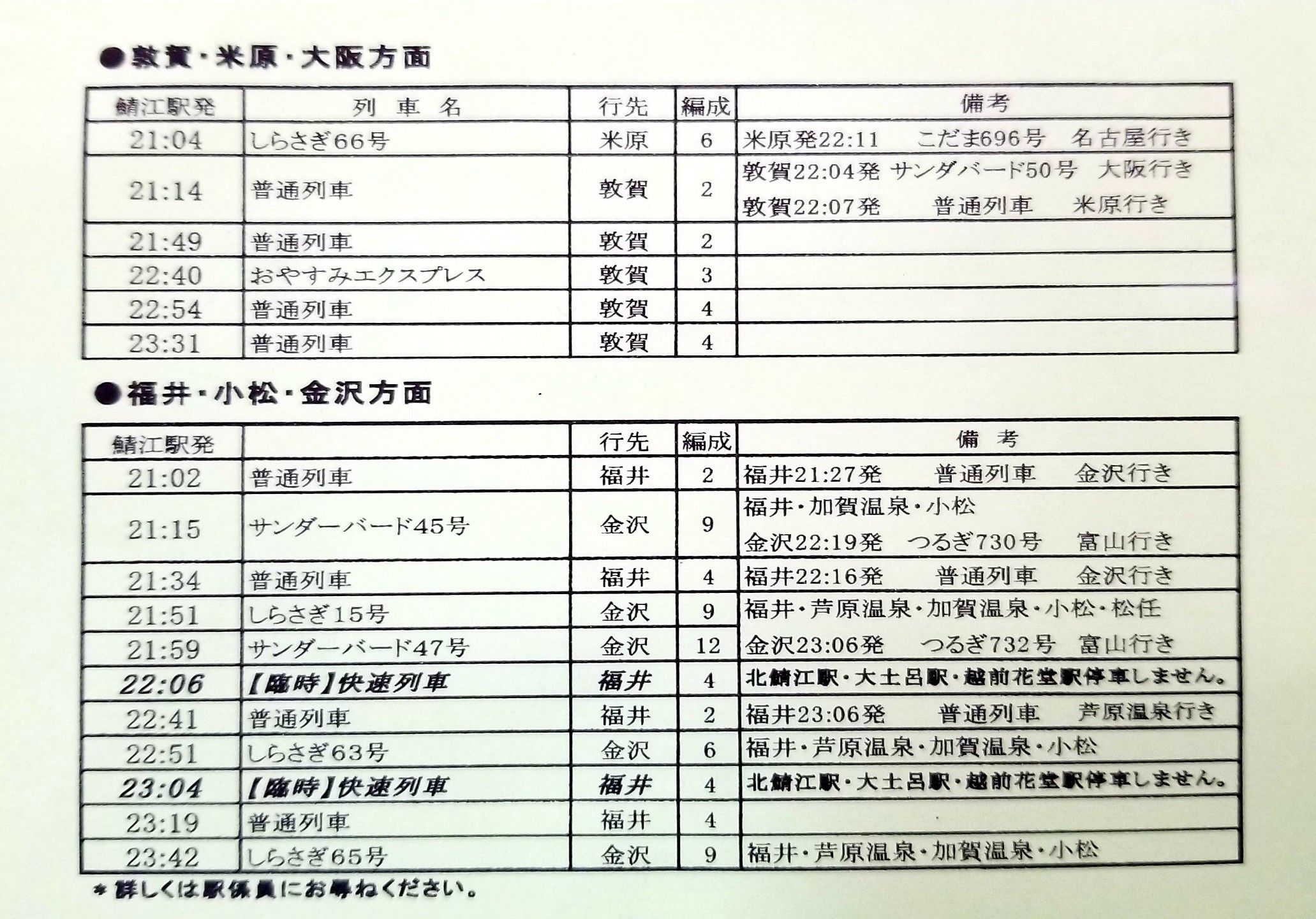 29日(土)終演後のJR鯖江駅発の電車です。拡大表示福井駅周辺は小雨でしたが、鯖江駅周辺は降っていません。今日の予報では、開演まではなんとか持ちそうです。