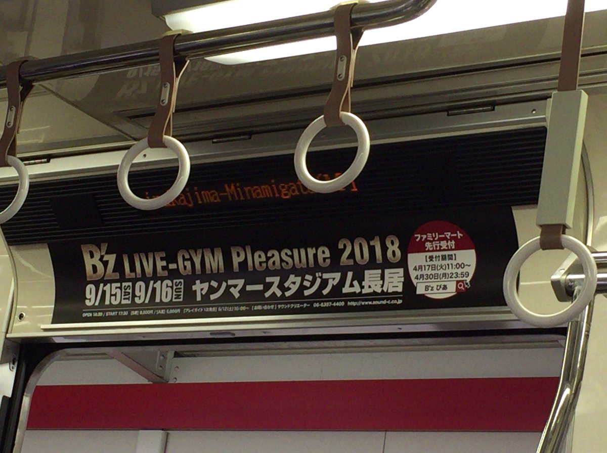 大阪出張。地下鉄御堂筋線乗ったら中刷り全部B'zで嬉しすぎ😭