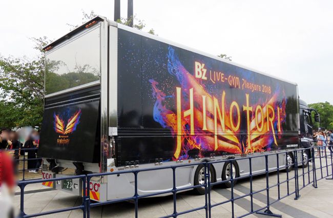 ヤンマースタジアム長居 撤収作業中のツアートラック「178」B'z LIVE-GYM Pleasure 2018 -HINOTORI-   YouTube (1分18秒)