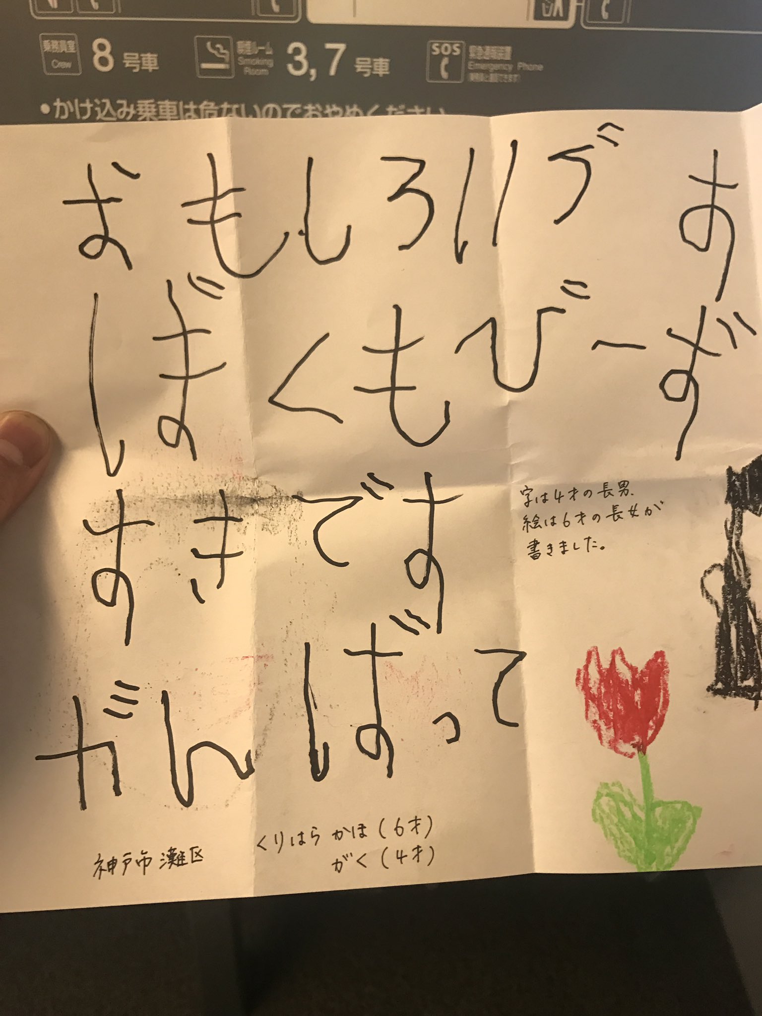 神戸の営業先で、子供から素敵なお手紙もらったぜ!びーずがすきなんだね^ ^ありがとう!泣けるぜ!そしてB'zのファン層幅広いな笑! #bz pic.twitter.com/WVBrhzlcbc