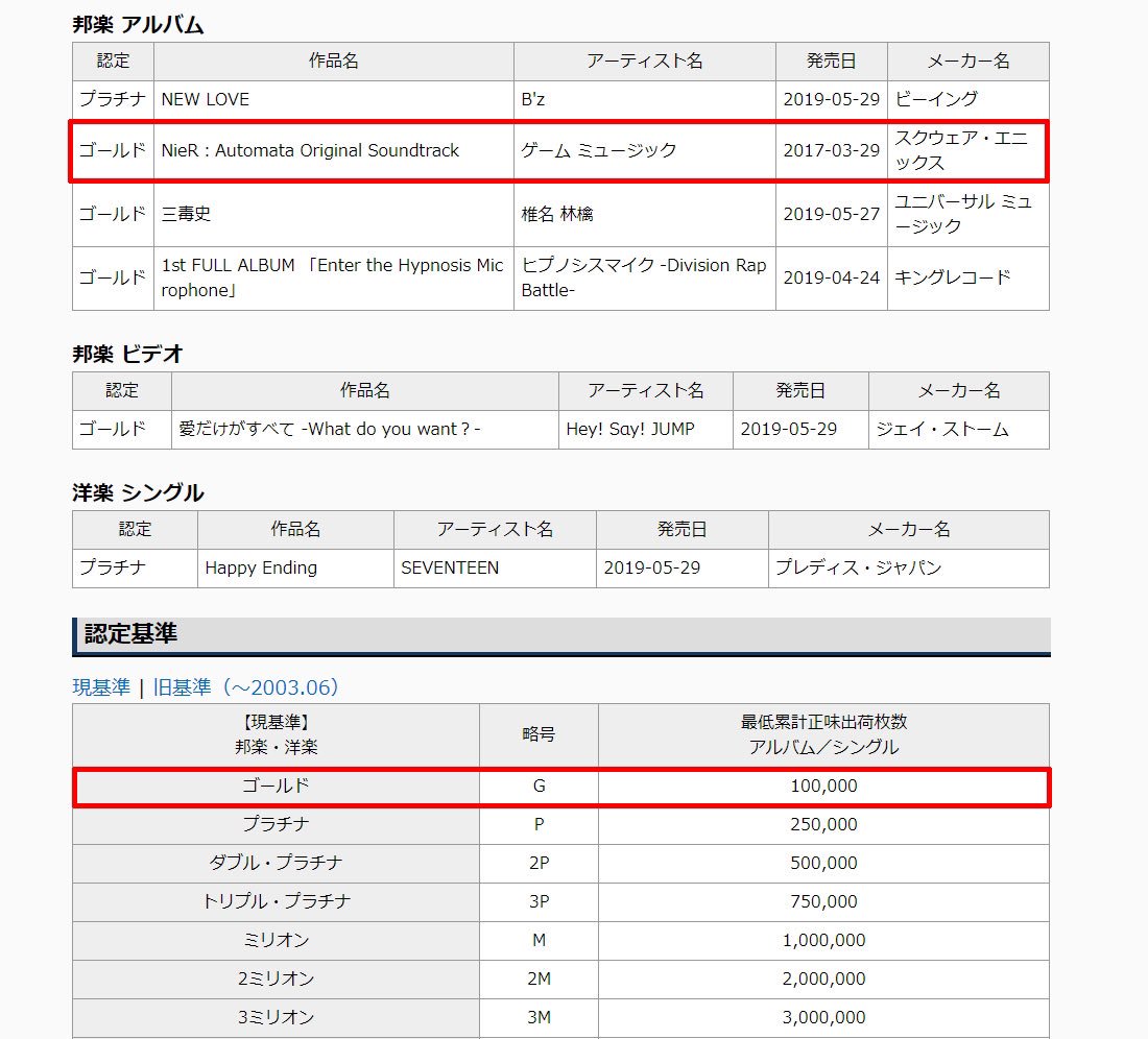 「NieR:Automata Original Soundtrack』が、日本レコード協会のゴールドディスク認定を受けました。