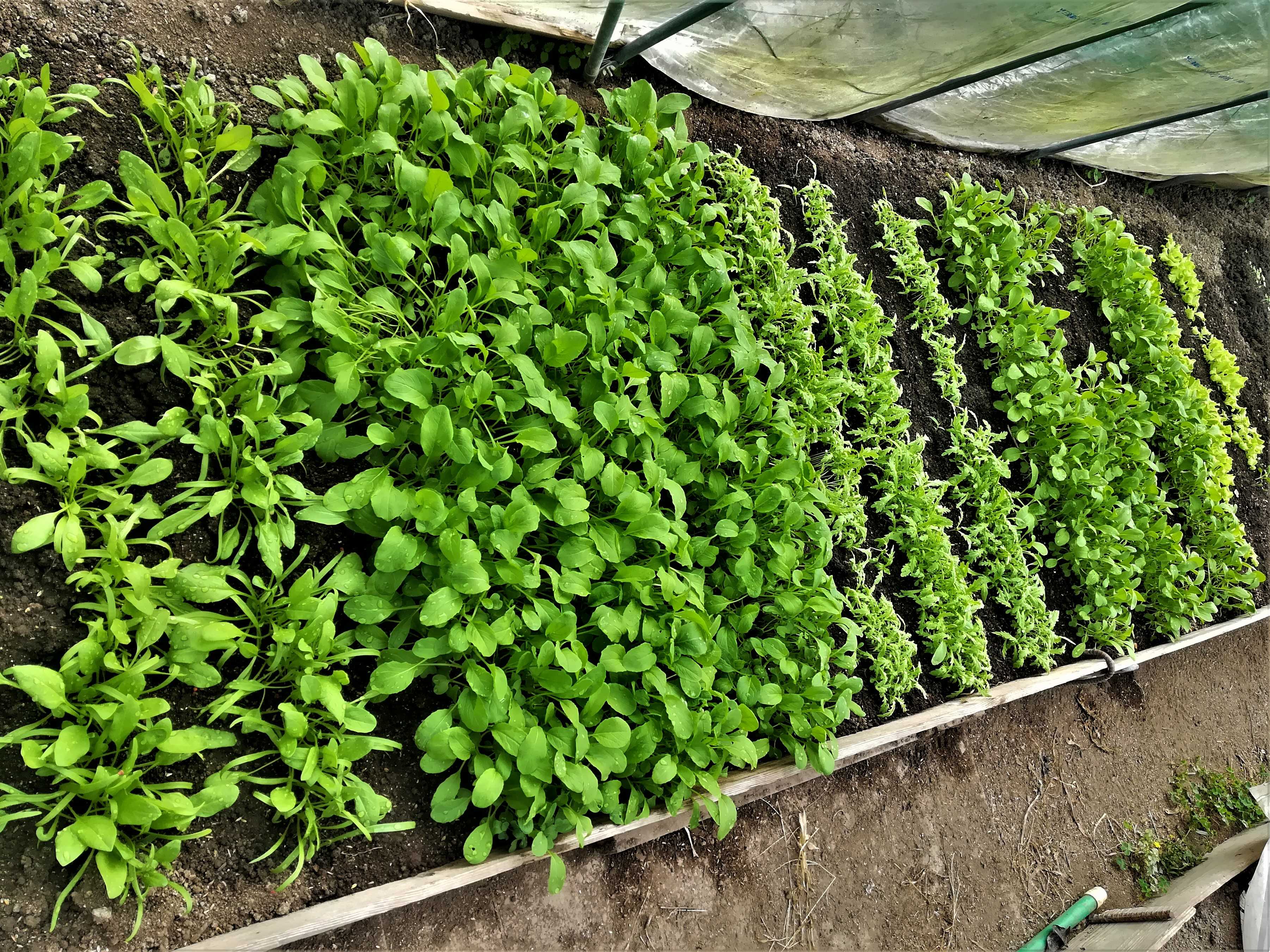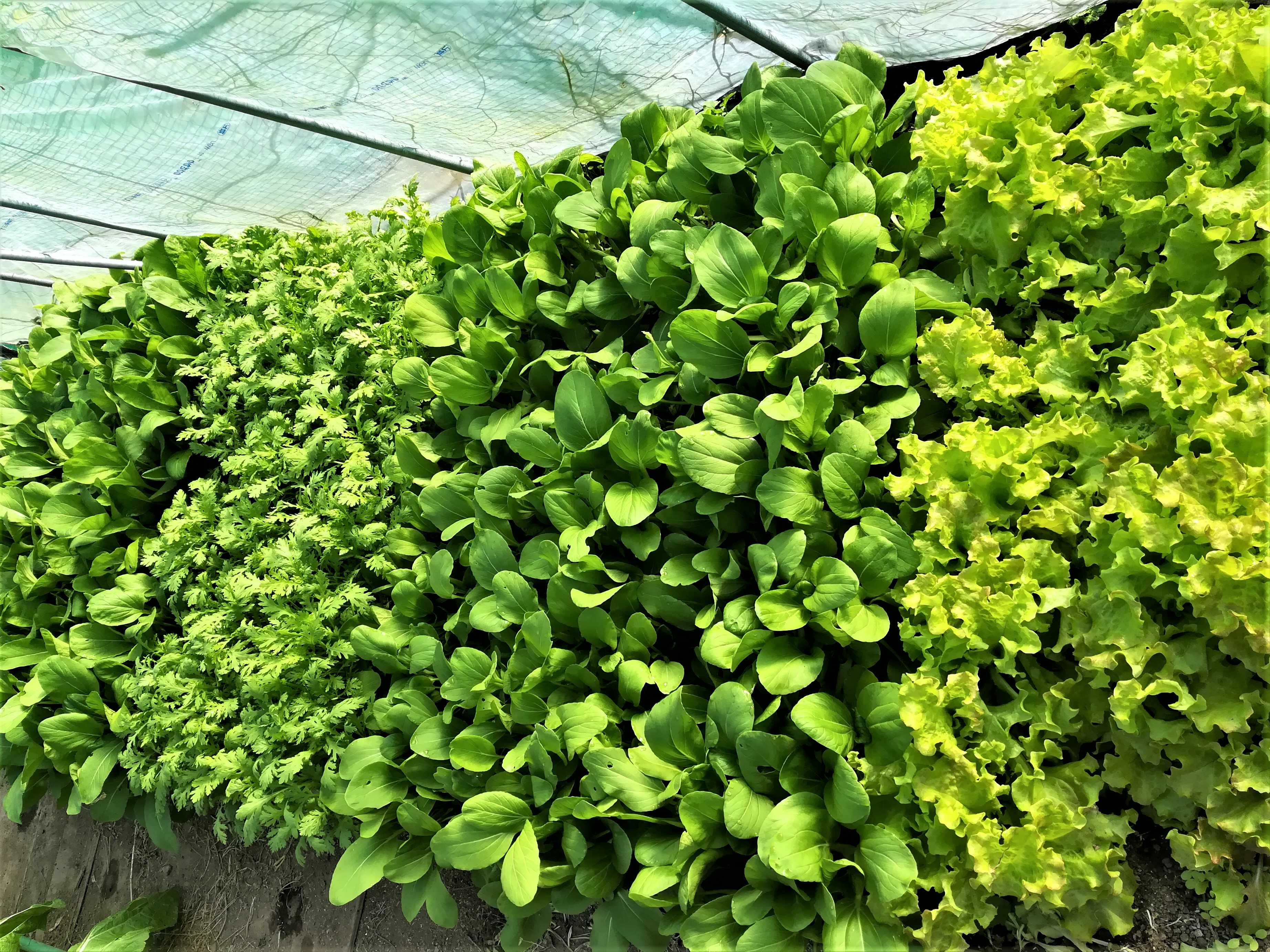 山の畑も本来の秋らしい気候となり朝晩は寒く日中は暑くなった。連日猪の対策に追われ農作業ははかどらない。そんな中間引き、定植もできてない葉野菜が育っている。ホウレンソウ、小松菜、春菊、チンゲン菜、サニーレタス1週間前に播種した かつお菜、ホウレンソウ、水菜、パクチー白菜キャベツ ブロッコリー収穫 間引きした葉野菜 最後のキュウリ最期のオクラ、トマト