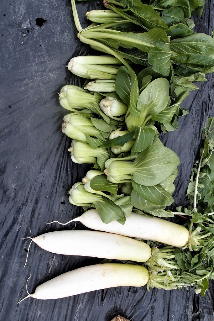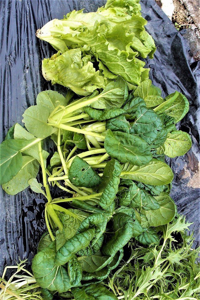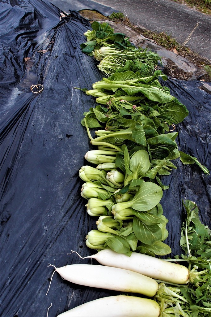 その後今年の初収穫ですが昨年末と変わりはなく、里芋(土垂)・大根・法蓮草・小松菜・チンゲン菜・かつお菜・ちょうほう菜・レタス(巻きなし)・水菜です。