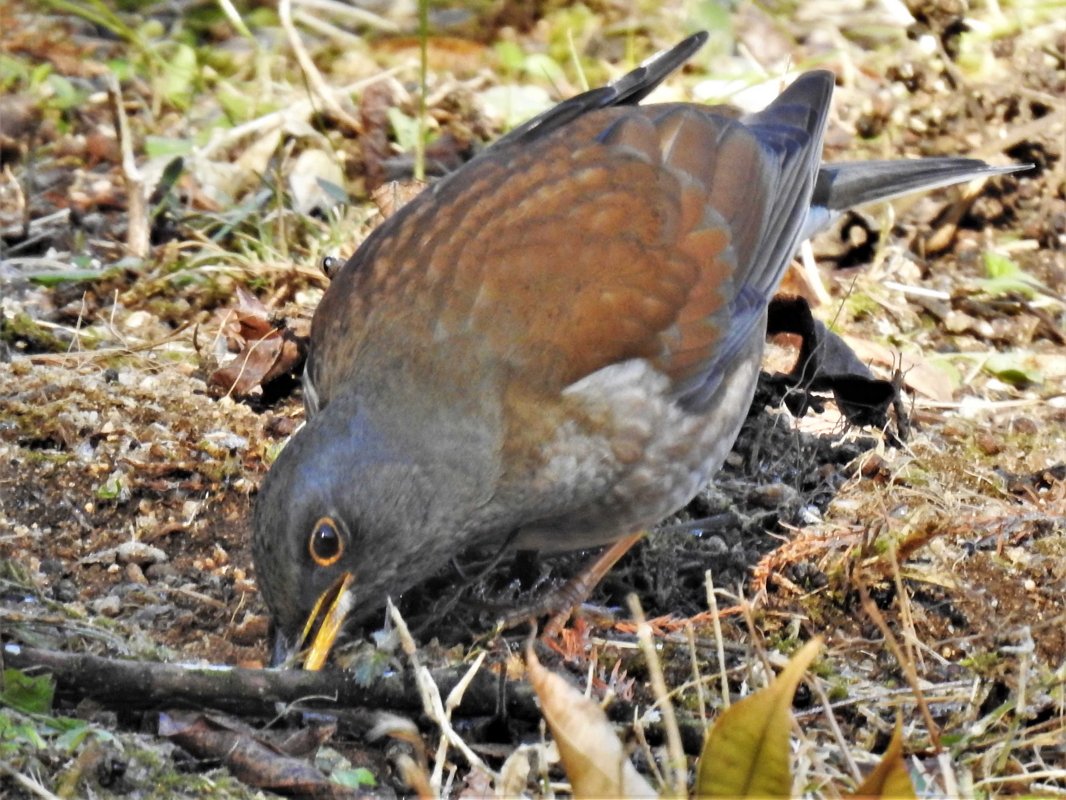 木の実を食べているときもあり、地面を漁って虫を探しているときもあります。