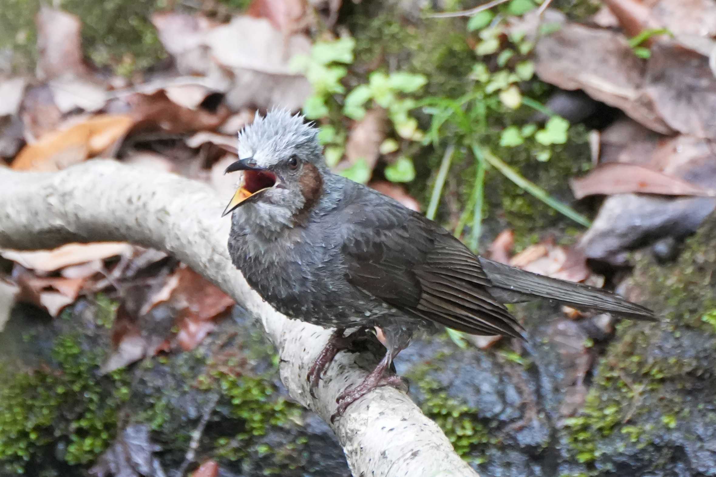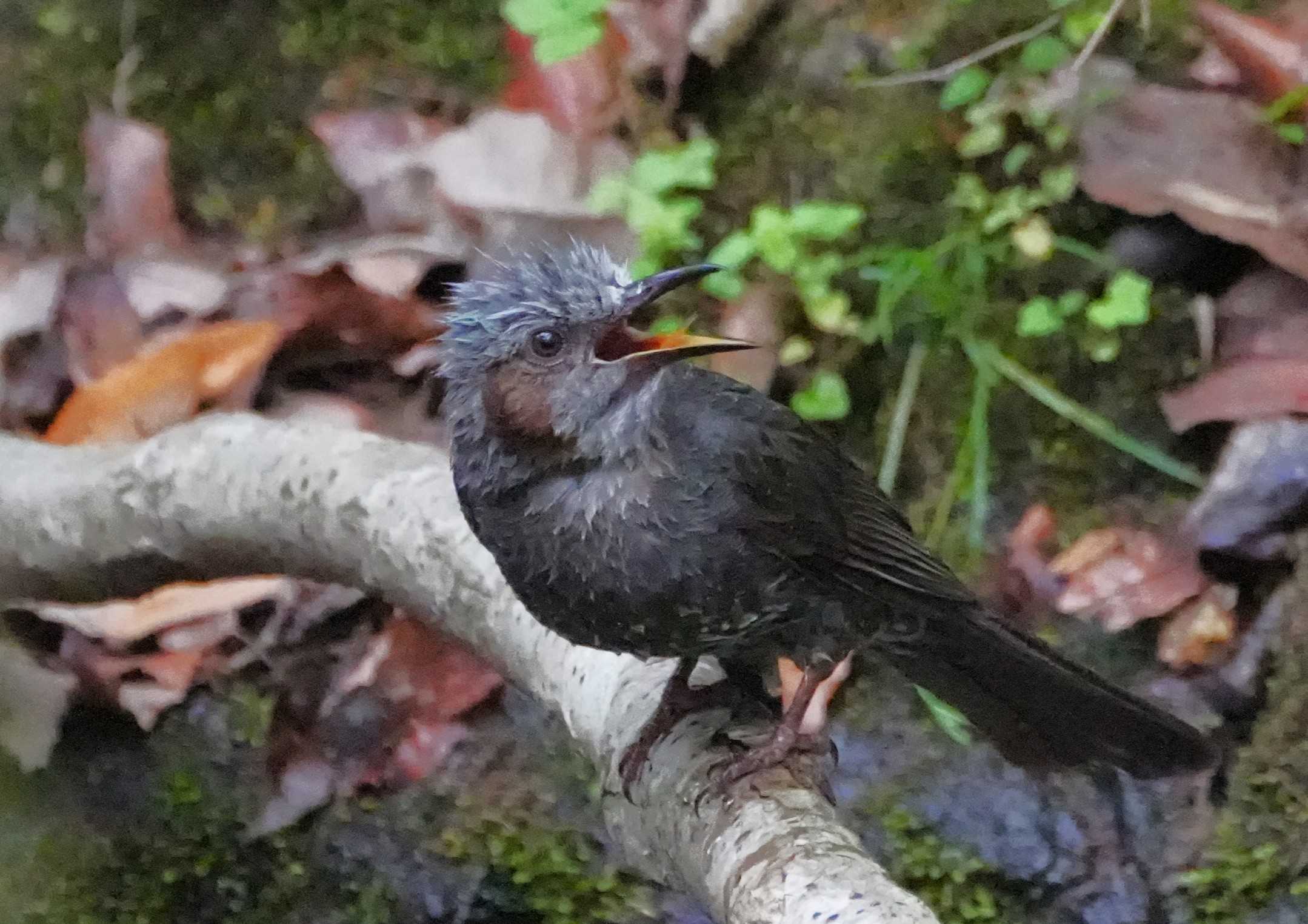 水浴び後にこちらを向いて喜びの鳴き声?