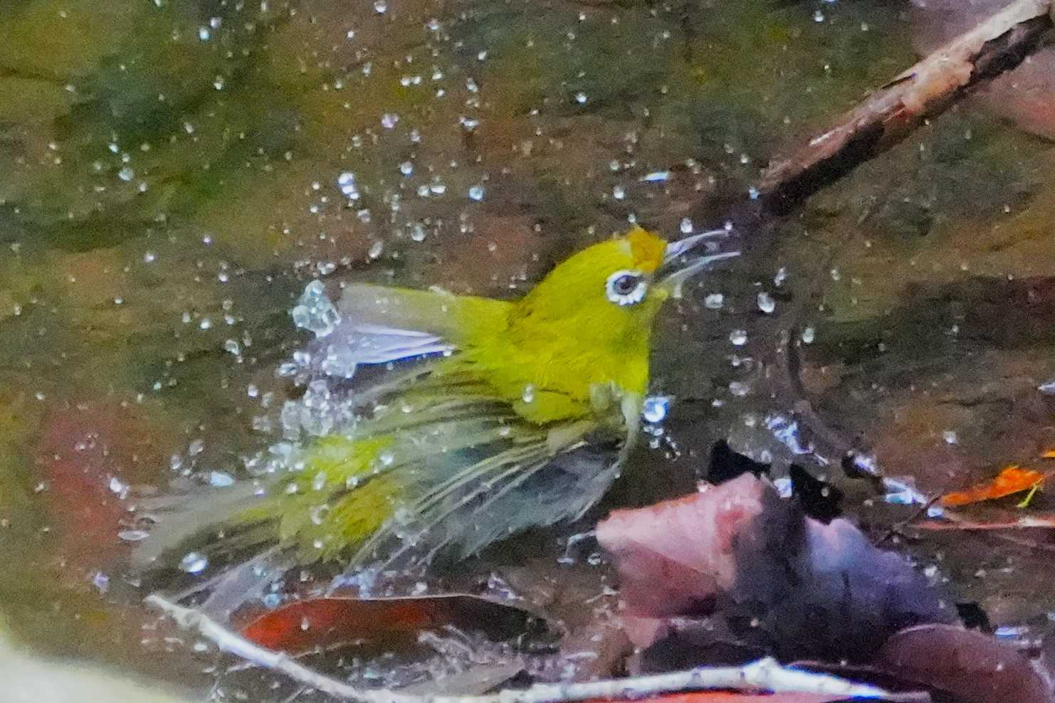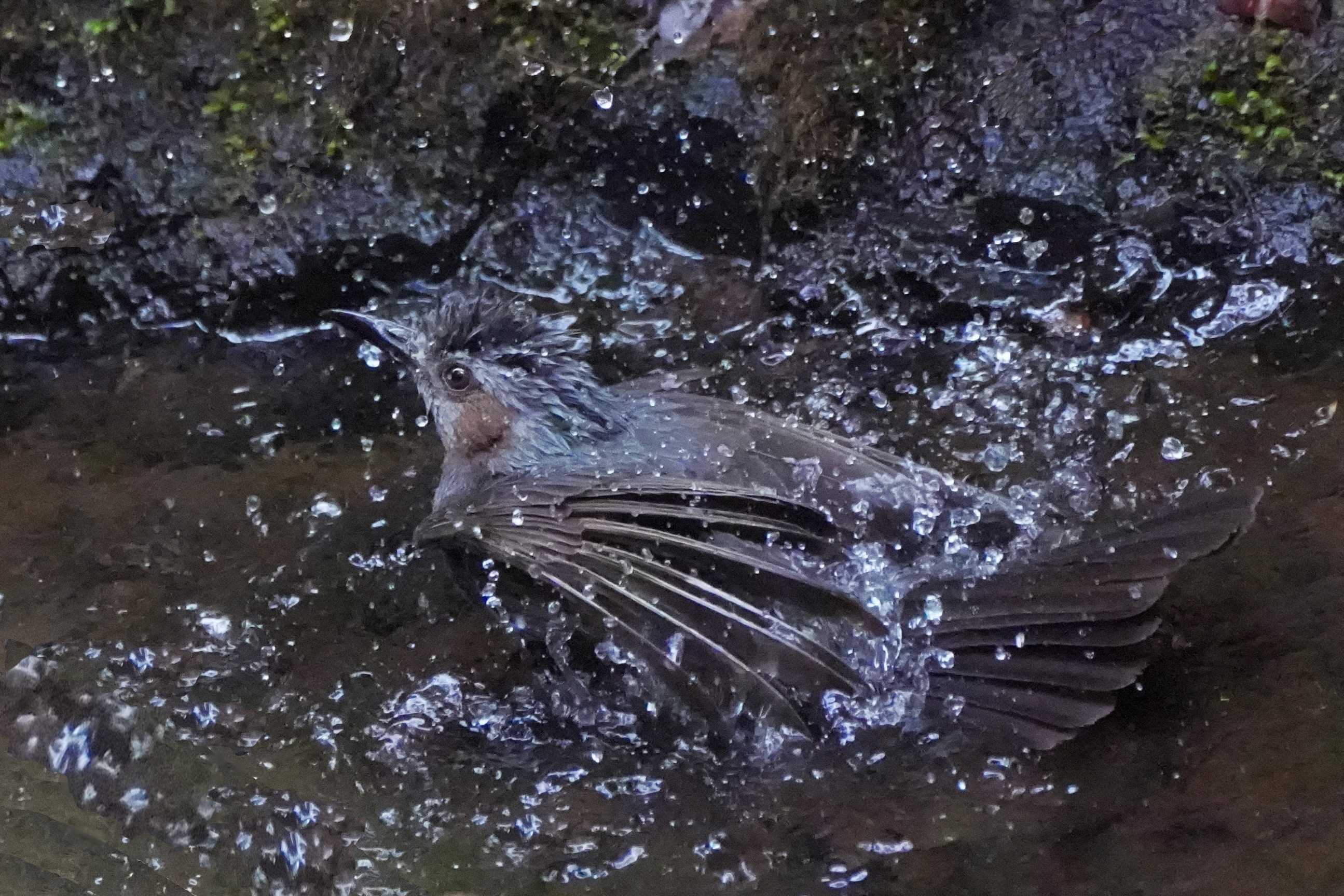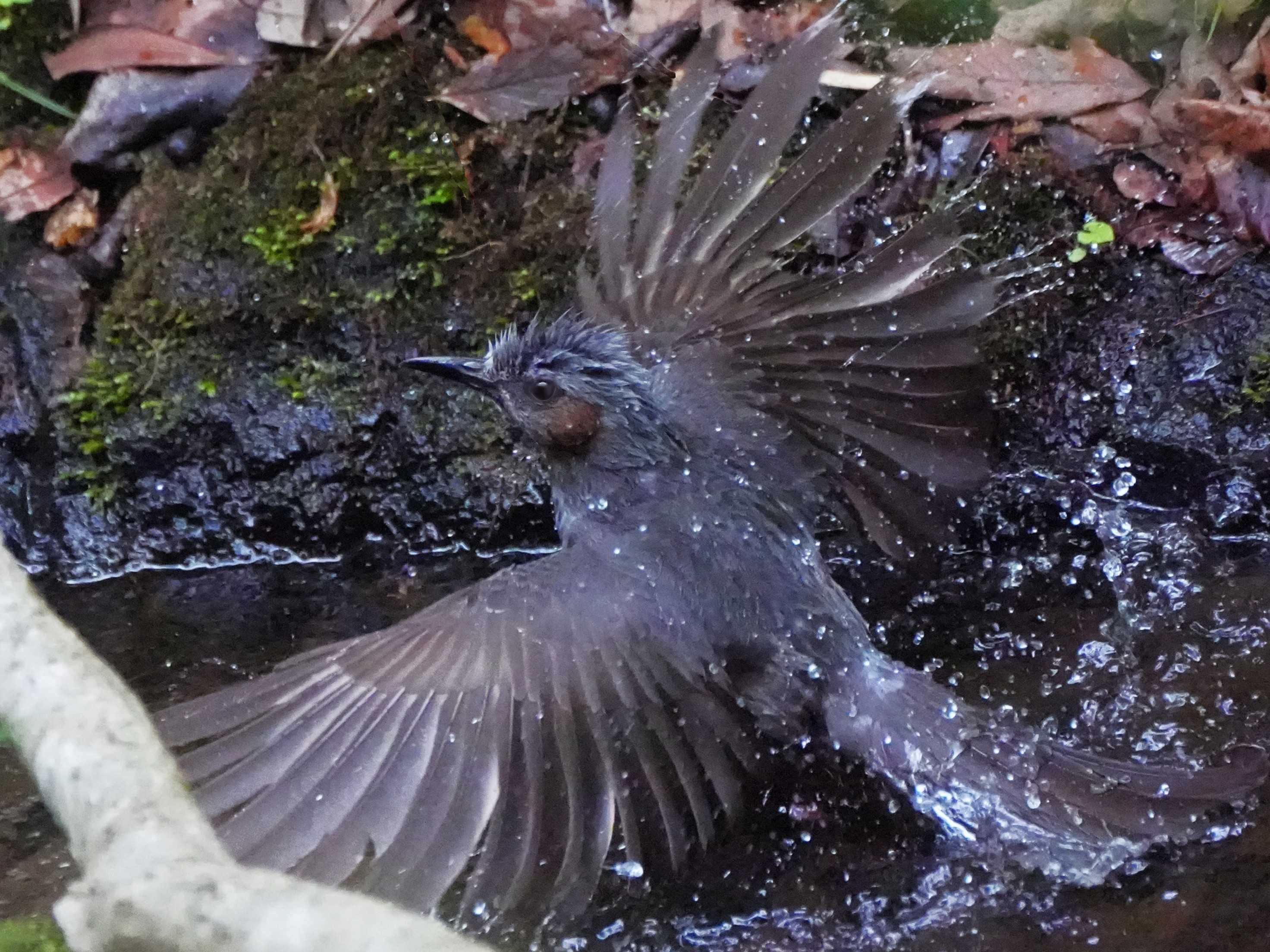 その中 ヒヨドリさんが水浴 を満喫していた。