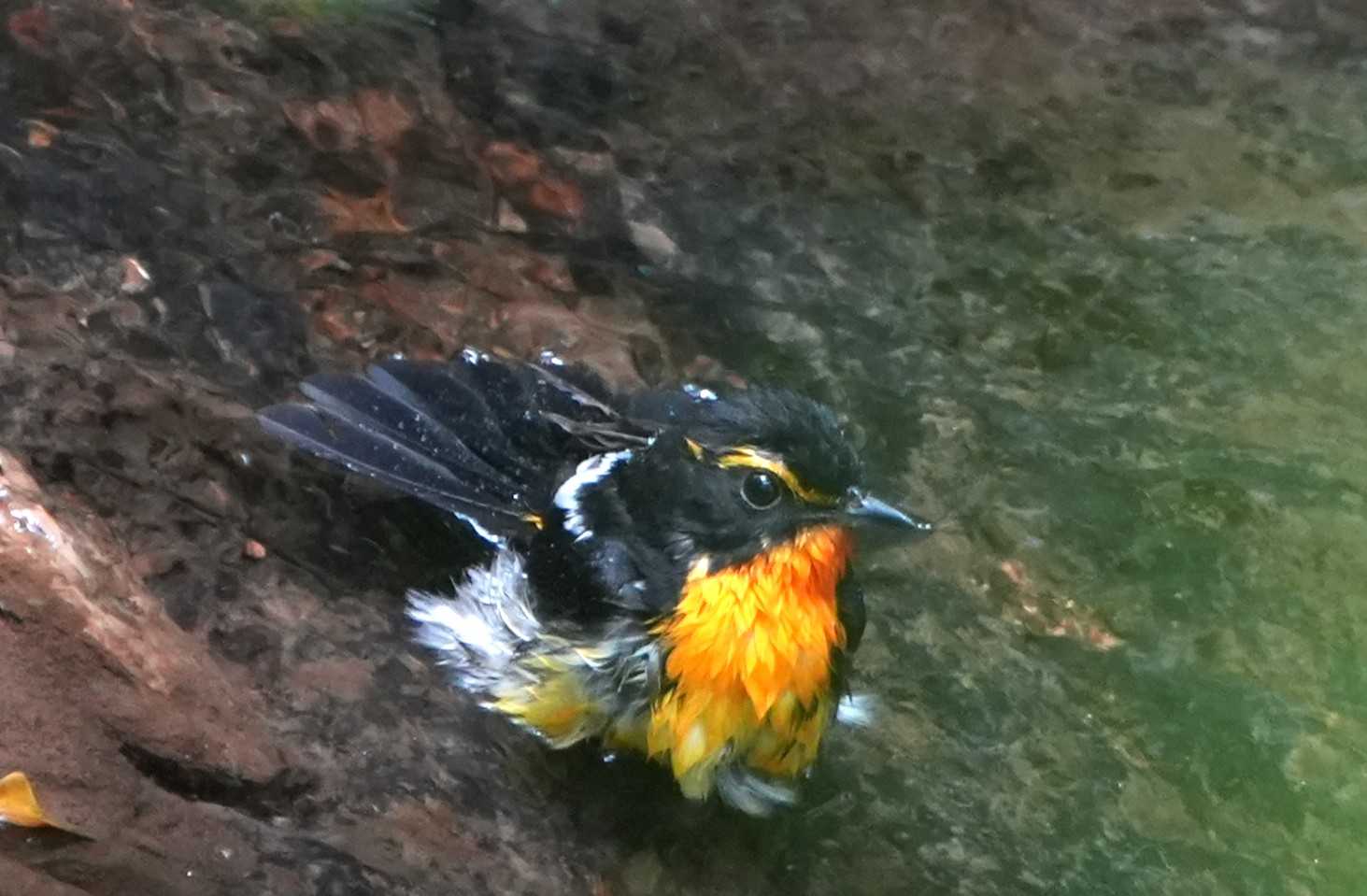 期待しないで水場を覗くと小鳥さんたちが出てきてくれた。①キビタキ②ソウシチョウ➂オオルリ 幼鳥④ヤマガラ 若鳥⑤メジロ