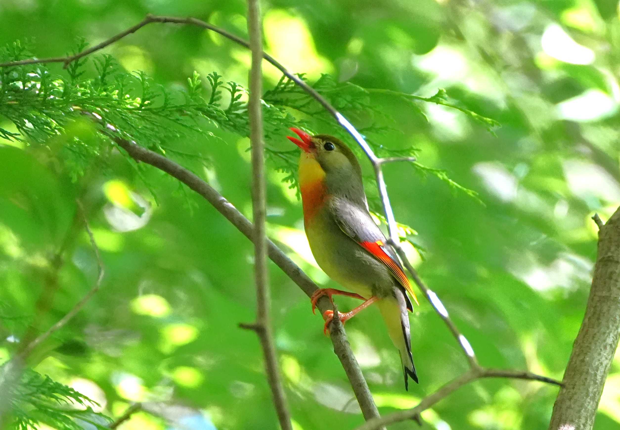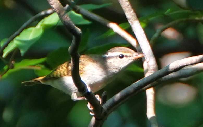 経験したことがない?という暑さが連日続く真っ盛りの夏。久しぶりに鳥見に再度公園に出かけた。 朝の早い時間だと日陰が多く少しの風が涼風となり散策もしやすい。でも真夏にはいつものように鳥枯れで遊んでくれる鳥さんは少ない。今日も期待した夏鳥さんが姿をなかなか現してくれなかった。今日遊ばせてくれた鳥さんは10種類だった。①ソウシチョウ ②キビタキ ➂ヤブサメ ④センダイムシクイ ⑤ヒガラ ⑥エナガ ⑦ウグイス ⑧コゲラ ⑨シジュウカラ ⑩メジロ①ソウシチョウホオジロさんが今回は遠くからの挨拶だったが、ソウシさんが藪の中から出てきてくれた。2)キビタキ幼鳥 たぶんキビタキの幼鳥さん➂ヤブサメ いつものように暗い場所④センダイムシクイ いつものようにほぼ真上⑤ヒガラ⑥エナガエゴの青い実をつついていた⑦よく見るとムシクイさんかな いつものように鳴きながらちょこまか葉陰を動いていた⑧コゲラ コゲラさんも今日はあちこちで。⑨シジュウカラ 枯れた松の木に混群でいて松かさの間の実を食べていた。⑩メジロ今日はあちこちで食事する群れを見た。メジロさんが松の実を食べているのは初めて見たと思うこれは何の実かな