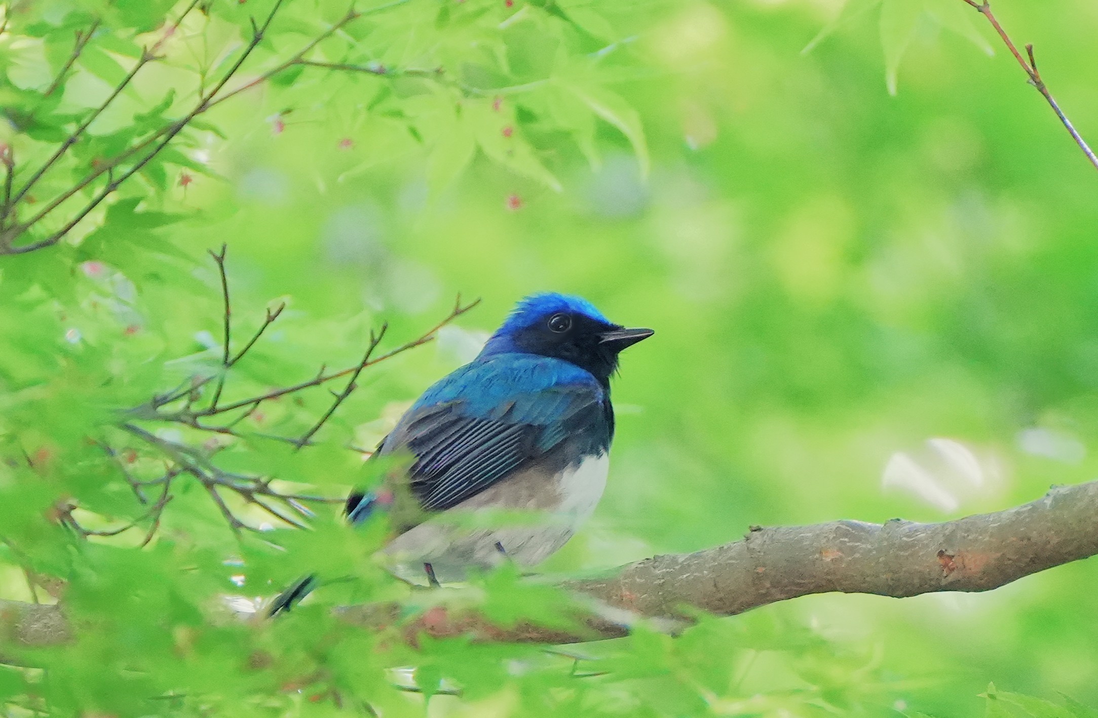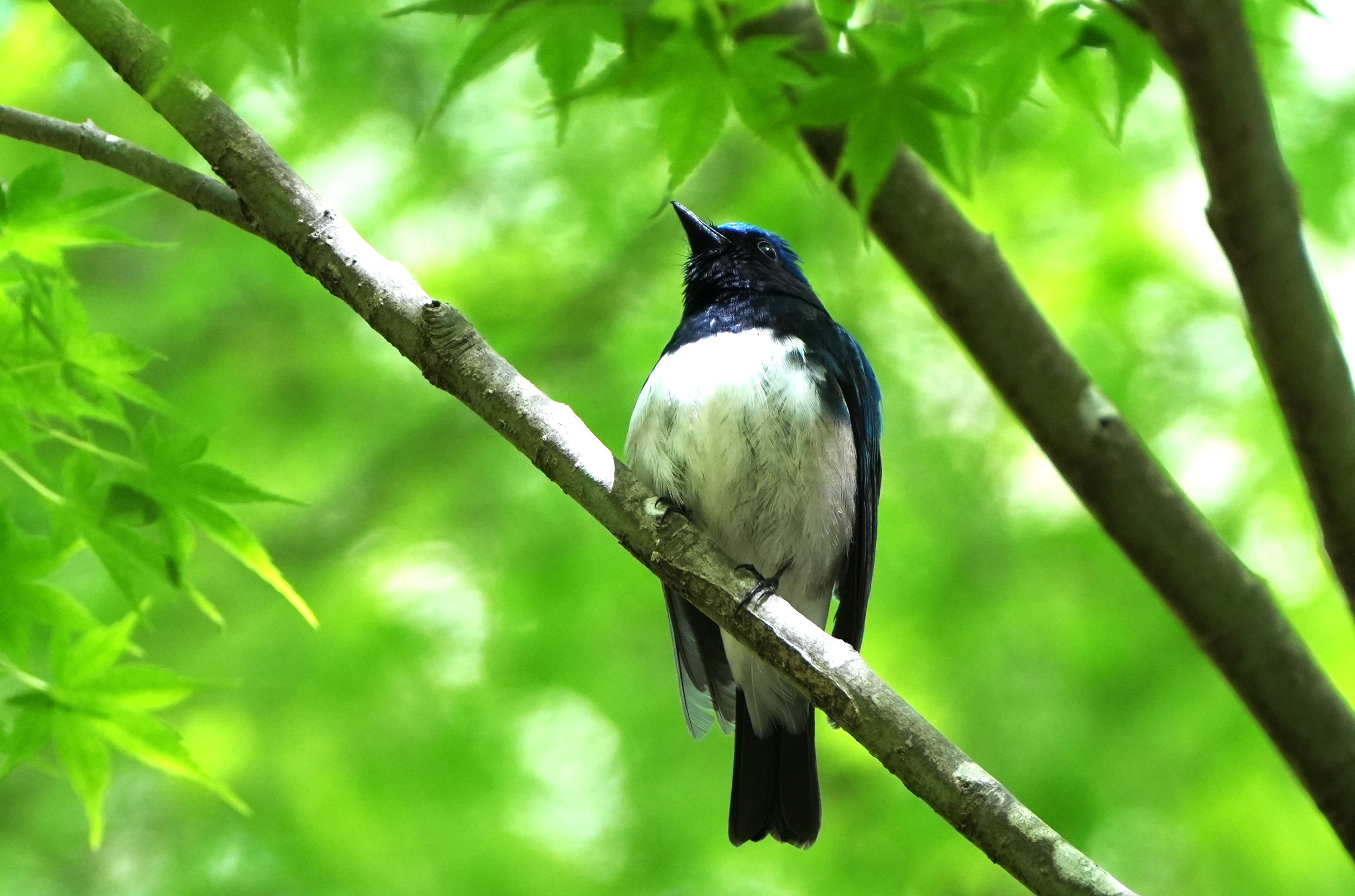 その2)2025-04-30-再度公園オオルリさんに会えて少し元気をもらったので、帰りに再度公園によって見た。今日は少し遅れたからと いつもの松林のほうには行かず 何度もオオルリさんの声を聴いて一度だけ画像も撮った場所に直行。2度ほどそのへんを回ってみたが今回は鳴き声も聞こえない。かろうじてカケスさんやキビタキさんなどには会えたがオオルリさんには会えない。それで帰り道を歩いていたらIさんに会った。 松の木の上でオオルリが鳴いていたとのことだったので松林の北側から鳥見をしながら歩いていたらIさんが言った松の木のほうからオオルリの声。最初はてっぺんで声だけだったがカメラを構えていると段々降りてきた。最後に明るい枝まで下りたのでチャンス到来とシャッタ-を押したがその前に飛んで行ってしまった。後ろを見ると5人ほどがいつのまにかカメラを構えていて残念がっている様子だった。木の上のほうで撮ったのはやはり暗くて色が出てなかったが今日は2か所のポイントでオオルリさんに会えてよかった。オオルリ♂ほぼ真下からオオルリさん以外の鳥さんキビタキカケスどんぐりの実を口にくわえた後、そのまま飲み込んだ。消化できるのかな?ヤマガラヤマガラさんは紅葉の若葉の間の青虫?を捕えていたホオジロホオジロさんはいつものように鳴いていた