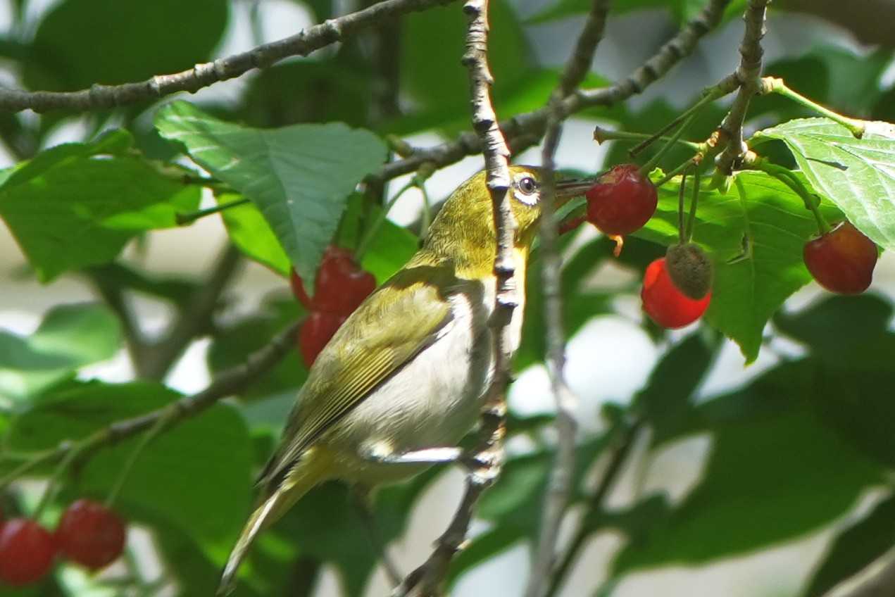 例年実るサクランボも終わりとなるこの時期。少なくなったサクランボにいつもの鳥たちが群がっていた。メジロスズメヒヨドリ