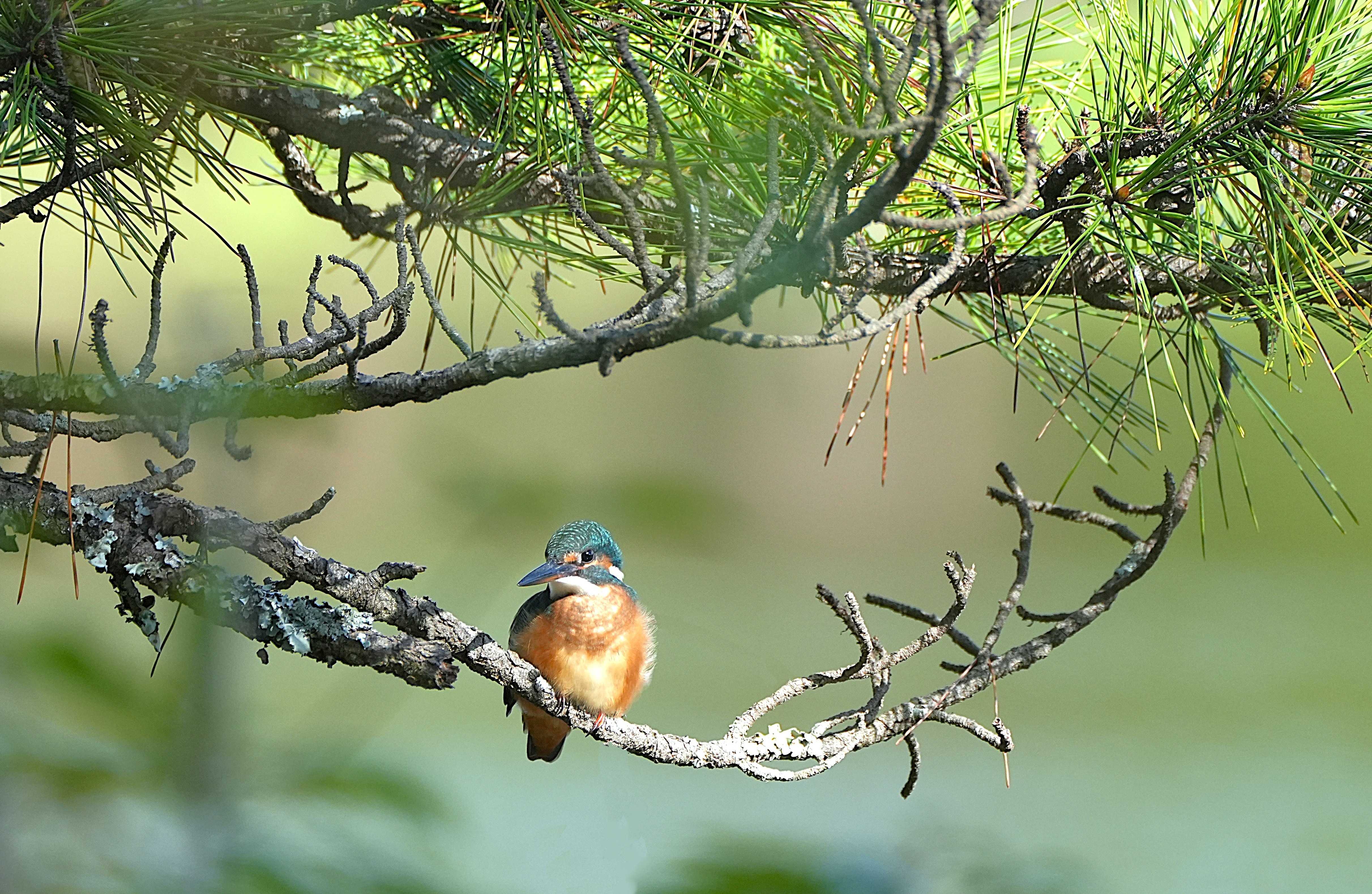 およそ2週間ぶりの訪問。 ここ数日めっきり朝は涼しくなって長袖を着込んで行ったのだが それでも肌寒いくらいだった。今年の春先以来 久しぶりに ”カワセミさん” が相手をしてくれて たくさんの画像がゲットできた。この日は3度遭遇し、3番目の松の枯れ枝の上では慣れてきたのか長時間遊んでくれた。これが最初の木の枝 目の前10mくらいに突然飛んできてとまった。レンズを除くまでは ミミズ見たいものを加えていたのでモズかとおもった。2番目、ここではダイビングしていたのだが その場面は撮れなかった獲物はちゃんとゲットしていた。