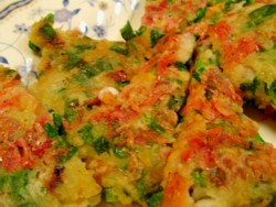 最近作ったもので自分でおいしい~♪と思ったもの海鮮チヂミとわかさぎのからあげ です。 テレビでやってたのがとってもおいしそうに見えて・・モランボンのチヂミのもとがあったので それにイカ、にら、ねぎ、豚を足しました。粉も100グラムしか入ってないので、天ぷら粉を追加。水は様子を見て追加。混ぜるというより「あえる」感じでするのがコツだそうで。そして フライパンの上に広げてから網えびをのせて、ごま油をかける。香ばしくできました。 もうひとつがワカサギの天ぷら 最近スーパーでよく見るのが琵琶湖産のわかさぎ。これくらいの量で390円くらいかな。から揚げ粉をつけてあげたのですがおいしいー!!カルシムをとってる!!という充実感も味わえますし^^;反抗期の子供にも食べさせました