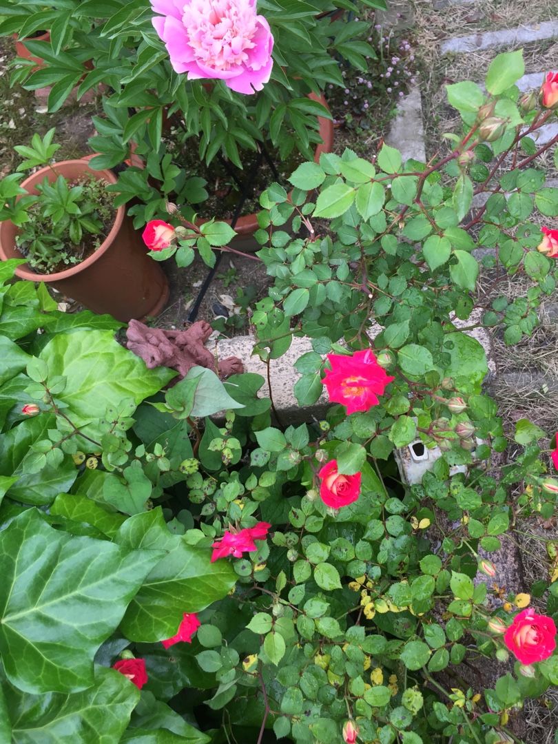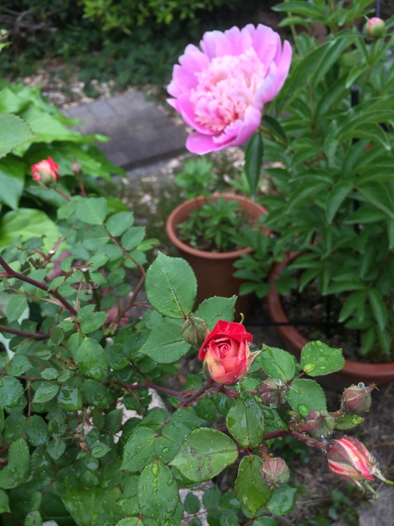 芍薬とミニバラが一気に咲き始めました。