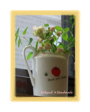 ハーブはすぐにワサワサと葉っぱが生えてくるので、切り戻しを兼ねてこうやってちょっとした花などの脇役として活用しています。