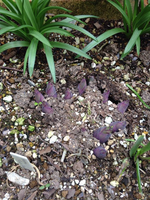 ムスカリが咲き始めましたよ。 2年前に二、三十個は植えたムスカリの球根ですが、だいぶ数が減りました プシキュニアが満開です。 クロッカス レディー キラー はもう終わりかけ 植えっぱなしのヒヤシンス。去年までは白と紫が出て来ていたのですが、もしかして白だけ? オンファロデス スターリーアイズ つぼみ発見! 百合の芽出し ディセントラ フォモーサ オーロラ もはや雑草の勢いで、あちこちから芽を出しています。中の白いものはプシキュニアですよ。 チューリップ ブルーダイヤモンドのつぼみ発見