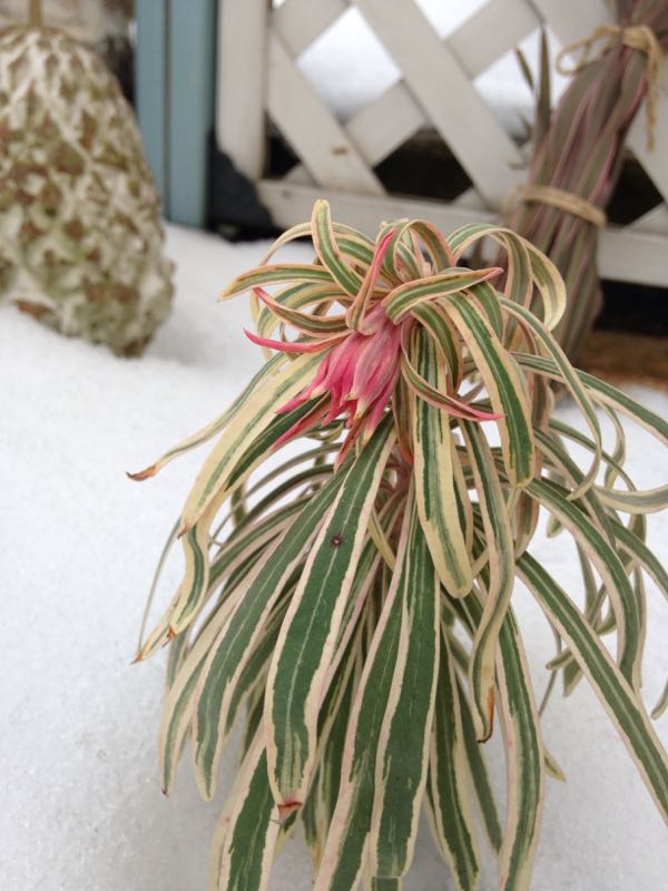 雪が降る前に、カットして外に放置していたセンペル。 昨日雪の中から拾ってみたら、すごく綺麗な色と形になっててビックリ。 なんて生命力! 植物を育ててると、突然こんなプレゼントのような出会いというか、刺激がもらえる。 2016年は家族の病気や怪我、入院が相次いだ他、様々な要因が重なって身動きの取れない一年でした。 ガーデニングらしい事は春で終わってしまってました。 気持ちに余裕が無いと、植物を愛でるどころか、目にする事もなかったりして、… もちろん秋植え球根を仕込む事も出来なかった訳で… 今は、身の丈に合った、無理のない庭づくりへシフトチェンジする時なのかもしれない。