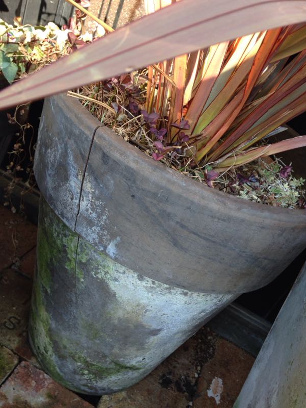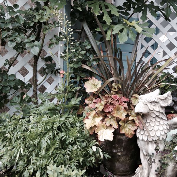 だいぶ春めいてきましたので、 2年経ったニューサイランの株分けをしました。 こちらは、去年の状態です。ヒューケラが元気です。 3つに割って大きな方を、アメリカヅタとヒューケラとオダマキとビオラとマンネングサと植えました。 ぐらつき防止の支柱の見栄えが悪いですが(; ̄ェ ̄) てか、去年のヒューケラの勢い…詰め込み過ぎか〜〜!?あと2年は植え替えしないつもりなのに〜! このニューサイランは鉢植えのまま2回軒下で越冬しました。この冬は、麻ひもで葉を縛っただけの冬支度でしたが中の方の葉はあまり痛んでいませんでした。 その他も、DIYの塀の被害から免れるためにも幾つかを鉢にあげて避難させていただきました。 それにしても、狭いスペースに鉢が多すぎて見栄えが悪いったらない。バックヤードが喉から手が出るほど欲しいけど、無い物ねだりをしても意味がない。 スッキリカッコいいフロントガーデンにするには、いろいろ諦めなくてはいけない。 自分を納得させて割り切るまでにはまだまだかかりそう。 このジレンマが楽しかったり苦しかったり。 ちなみに、今回使ったデコラティブなこの鉢は、ホムセンで見つけたテラコッタ。軽くて安くてgood!
