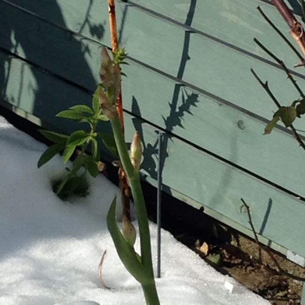 二期咲きのジャーマンアイリスなのですが、日当たりがあまり良く無い場所に植えたためか、寒くなる前に咲けずに、冬突入。 今後の動向が気になるので放置です。 写真は先月のもの。 現在は上まで雪に埋もれています。 折れちゃったかも… ジャーマンアイリスは増えすぎるので、場所を変えたりしながらスパルタ対応。 おまけ 丸一年経った スキミア マジックマーロー 二年目は蕾を付けにくい、というネットの噂もなんのその。 蕾つけてました! 良かった… 追記 2017/3 雪解けと共に現れた、ジャーマンアイリスの花芽は やはり折れて潰れて残念な事に… 咲けなかった花芽は切ってあげましょう