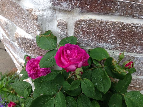 昨年初めに地植えして、塀を右サイドから彩ってくれた ラレーヌ バイオレット。 生育の良さとしなやかで扱いやすい枝ぶりをかって、あえての鉢上げ。 今年の任務は、玄関横の柱を伝ってアーチっぽいものを形成していただく事でございます。 ここは、地植えすることの困難な土の少ない場所。 北側で日当たりも悪く、むしろ西日しか当たらない任務地ですが、、貴女ならきっとできるはず!!はず! そして、今までのバイオレットの後釜には、オールドローズ レーヌデビクトリア。 株元は完全なる日陰ですが、50センチ伸びれば我が家で最も日当たりの良い、好立地です。 二者とも、日陰に耐えられる、どこでも輝ける女王さまです。