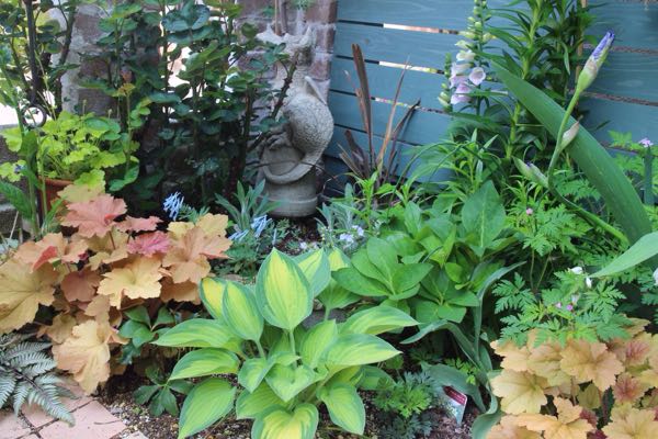混み合っていたジャーマンアイリスを掘り上げて、さっぱり。 画面後ろの石臼は、ひっくり返して土に埋めて平らな面を上にしてグリフィンの土台にしていましたが、掘り上げました。 今年はこのスペースの植栽失敗しました。 春に植えた、写真左の鉢のゴールドシモツケ(だったかな?)と アスチルベをがっつりこじらせてしまいました。 買った時より小さくなって、危機に瀕してたので一旦鉢上げしましたよ。 ホスタ ポールズグローリーは、正解だったのか…大きくはなりましたが、色が抜けてます。 涼しくなったら本来の色の葉を出してきたので一安心。
