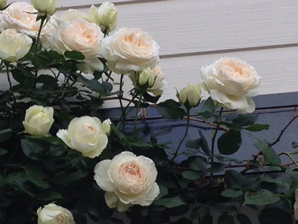 訳あって 家の外壁に這わせている、ブランピエールを地植え4年目にして、鉢上げする事になりました。 我が家のボロい外壁は、ちょっと見るに堪えないので、全体の写真を撮る機会が無くて、ちっともブランピエールの良い写真が無いのが残念です。 昨年、3年目にしてやっと本来の可愛いさを垣間見れたと思ったのですが… 5メートル超えしていた枝は全て短くカット! とはいえ、枝が木質化しており、思うようにはカット出来ませんでした(^_^;) そして、ブランピエールの怒りをかって、腰を痛めてしまいますた(;´Д`A