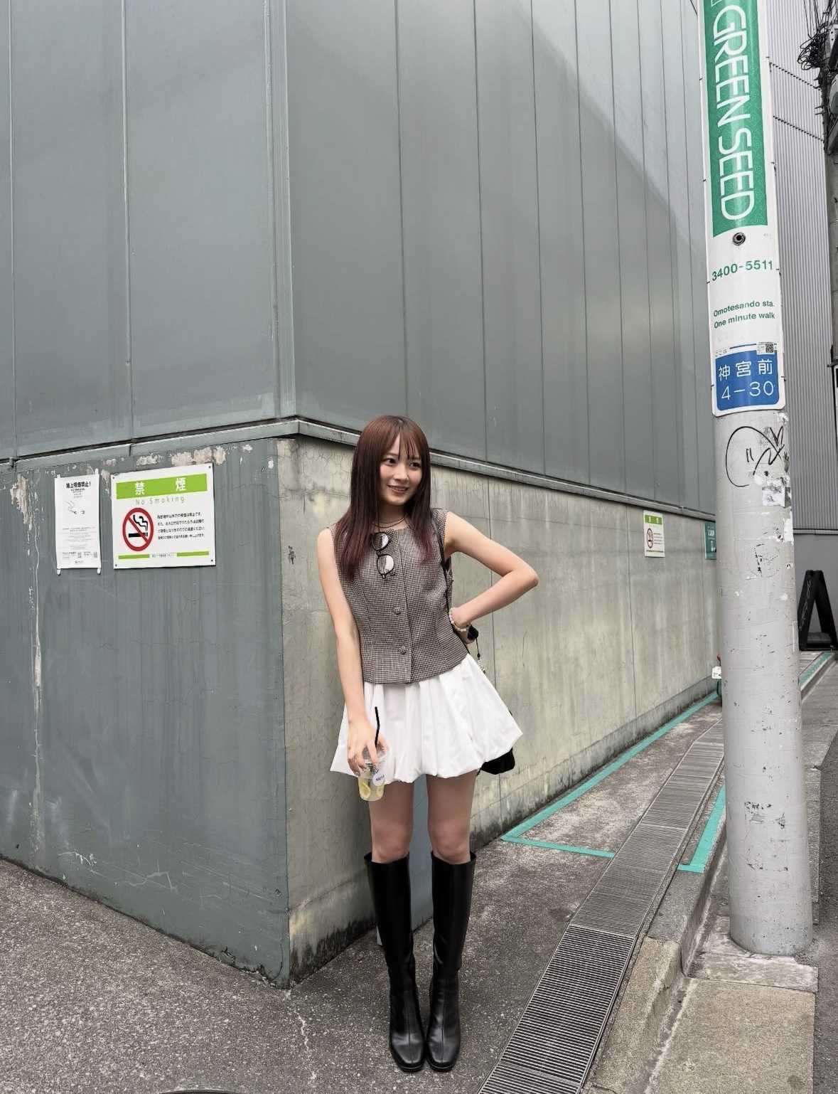 神宮前の路地で、秋服でお出かけした様子をアップしていたちぃちゃん。ちぃちゃん曰く、やっと涼しくなってきてうれしいうれしい〜、と綴ってましたね・・・。