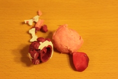 昨日、我が家のトイプードル(2歳♂)が、ハウスのなかでゴソゴソやってると思ったら・・・マカロンがボロボロになってたぁ~…(T_T)ピエールエルメ・イスパハン。これ、かわいかったのに~居間でおままごとするのに使ってるのです。テーブルの上にあればイタズラしないんだけど、床に落ちているとかじっちゃうのです。。。これまでもピエールマルコリーニのアイスなど、いくつかやられました昨日、長女はお年玉で買った「ホイップル」に挑戦。 【エポック社】ホイップる クレープセット価格:970円(税込、送料別)楽天だとずいぶん安いんだ…おもちゃ屋さんで1700円以上払いましたよこれが、、、ホイップが思うように全然出てこない!私も手伝って、2人がかりでギューギューしぼってやっとこさできたのがコチラ。クリーム、ボロボロ。この3つしか作れなくて1700円以上って。。楽天価格でも、もう買わないよっ。。リプトンのスイーツ(紅茶がついて88円)にデコった方が安くてかわいくなるんでないのそれか、アイロンビーズのほうが色々作れてよっぽど楽しい!!アイロンビーズスイーツも、トイプーちゃんに食べられてどんどん減ってますあと1年くらいしたら、次女ともアイロンビーズで遊べるかな~。長女が4歳のときに始めて、私もはまりました。次に買うならキティセットが欲しいよろしければ足跡お願いします