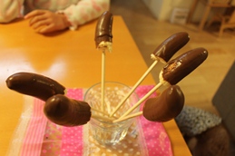 昨日の夕飯後と今朝にチョコバナナ。レンチンして使うコーティングチョコが便利。デコするものがなかったので、地味なチョコバナナ・・・クッキーは冷凍生地を使って作りました。キュービーロップを入れて焼いてみた。ガラスみたいできれいに仕上がったけど、クッキー&キャンディーってあまり美味しくなーい!チョコは溶けると思ったら焼きチョコになっちゃった。でもこれは味は良かった。クッキーは「かねます食品」ってとこの冷凍生地を使いましたが、とにかく甘かった・・・。でもクッキーがすごく食べたかったから食べきっちゃったけど。手間だけど、クックパッドのレシピ見て作る方が美味しいな。。クックパッドの人気レシピはハズレがない。本当助かります。にほんブログ村