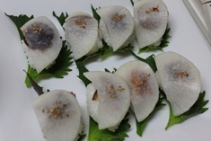 大分県佐伯市の新名物という『雪ん子寿し』レシピを探したら載っていたし、材料もあったので作ってみました。販売されている雪ん子寿し、美味しいんだけど高いんです。上に載っているのがシイタケと大根なのに、4貫400円。ギャル曽根ちゃんがTVで押してくれたらしくて売れているらしい・・・すごいねギャル曽根ちゃんパワー。めざましおめざにもしたみたいなので、お気に入りなんだろうな。干しシイタケを甘辛く煮たものを乗せるみたいなんだけど、レンチンで煮た、小さい生椎茸を乗せました。サンマかば焼き缶も使ってアレンジ雪ん子寿し。かば焼き缶詰、ダンナが買う焼酎のオマケについてくるから時々消費しないと溜まってきちゃうのです…事前に大根の酢漬けと椎茸煮を作っておけば簡単美味しい雪ん子寿し(もどき?)でしたクリックでポイントが入りますにほんブログ村