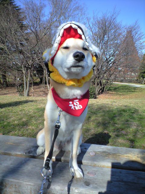 皆様、あけましておめでとうございます昨年中はたいへんお世話になりました更新ぼちぼちですが・・・ 本年もよろしくお願いいたしますハイ、ポーズ(シャッキ~ン)元旦からこの写真ですか(byラーラ)似合ってるよかぶりもの(by飼い主)