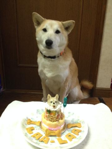 本日、8歳のお誕生日です(*^_^*)はやいな~今年はアトリエ ワフのケーキでお祝い似てる?かわいい!!いつまでもそばにいてね~ラーちゃん
