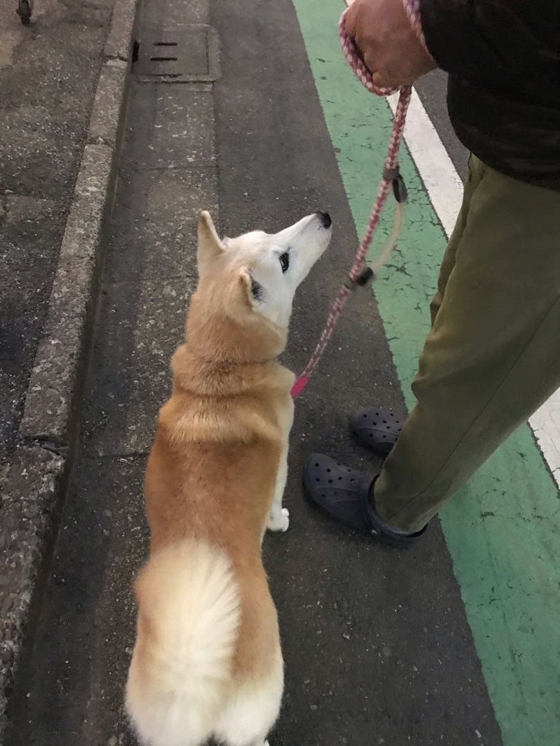 小さい頃は、飼い主を見て歩く、この光景に憧れたものですが(すごい賢い子に見えるw)