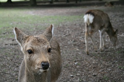 今日は朝から天気が良かったので奈良へ鹿さんに会いに行ってきたんだ。落ち込んだ時など、心の力が弱くなった時には必ずと言っていいほど訪れるんだけどね。鹿さんの貪欲な『鹿せんべい』への執着を貰いに行くってのかな、鹿さんと遊んでいるとナゼか力が沸いてくるんだ。そんな訳で今日もいつもの様にバイクに乗って鹿さんに力を貰いにってね。半年振りの奈良は観光もへったくれもない魅力の無い街へと変貌を遂げようとしている。町のあちこちに存在していた奈良の雰囲気を醸し出していた古い民家はビルやマンションへと変わり、町を縦や横に切り取るように車や電車の高架道が走り・・・・・・・奈良の町から広い空が消えてしまっている。ただ今も変わらずに待っていてくれるのは鹿さんだけ。しかも新しい芸まで習得して待ってくれていた。これまでは頭を上下して(お辞儀を繰り返して)鹿せんべいをおねだりする。そして頭で突いて自分をアピールする。こういった芸だったのだが・・・・半年振りの鹿さんはポケットや裾を『モシャモシャ』食べて鹿せんべいを催促するという新しい芸を習得していた。この新しい芸をどこで習得したのか知らないが数頭の鹿さんが自分のものとしている。この『モシャモシャ』が可愛くて可愛くて今日も鹿せんべいを大奮発。高畑駐車場から東大寺南大門までに10個(150円×10)も使っちゃったよ。昨年秋に派遣切りにあってから就活中のakiさんには苦しいけど、鹿さんの笑顔には負けちゃうしね『モシャモシャ』には萌~ってね。さてさて・・・・鹿さんとの戯れタイムもそこそこに大仏殿。入堂料だったかな500円は現代日本には高額なのか回廊の中は少ない人数で少し驚くが、ゆったりと奈良の広い空も満喫できた。大仏様は神々しく優しく力強く慈愛に満ち。akiさん同様に派遣切りとういう無慈悲な行いの被害者を救う為に何か出来ないかと考えていた事を助けてくださいとお願いしてきたよ。大仏様からは暖かいものを感じたのできっと大丈夫かな。さて大仏様との語らいも終わり鹿さんとの楽しい時間を再開。途中で『鹿さん』がチーに仲間入り。今後のブログの写真に登場することもあるので覚えてね。帰りも鹿さんと遊びながら、そして鹿さんにゴミなどの食べさせてはいけない物を与えるお馬鹿な観光客に指導をしながら・・・・ごみが落ちていると鹿さんが食べちゃうかもしれないのでゴミ拾いをしながら今日の奈良は終わりました。鹿さんは箕面のお猿とは違い襲ってこないので良いな~。