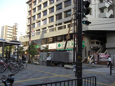 仕事の打ち合わせが終わったので・・・昨日、関西テレビの「よーいどん」という番組内で円広志さんがウマイと言っていたメンチカツコロッケを買いに行ったよ。場所は大阪市営地下鉄「緑地公園駅」の駅前商店街??駅前のビルにある串かつ屋さん。トラックに隠れて分からないね。写真のビル1F中央辺りに在る串カツ屋さん『串かつ市場 緑地公園店』大阪府豊中市寺内2-13-1TEL:06-6152-9417店の入り口でメンチカツコロッケやカレーコロッケとか・・・・どれも美味しそうで選べないほどに種類も豊富なコロッケが。きっとコロ助君も大喜びだろうね。関西テレビ「よ~いどん」のなかで、オープニング企画の『となりの人間国宝さん』というコーナーがあるんだけどね。関西各地の鉄道駅周辺を当番組パーソナリティの円広志らがノープランで散策しているんだ。18日放送分でこのお店が紹介されていたんだ。あまりにも円広志さんが美味しそうに食べているので江坂へ打ち合わせに行った帰りに買ってきたの「メンチカツコロッケ」を。家までは1時間。帰りまで崩れないかと心配だったけど・・・揚げたてなら・・・一口かじると中からたっぷりの肉汁がじゅんじゅわ~!!って感じ。でも家に着くまで1時間。袋の中で崩れてしまって肉汁が出ちゃってる。でもめっちゃ美味かったよ。円広志さんが目を光らせるほどに美味しいってわかる!!!だってまた買いに行きたくなったもん。