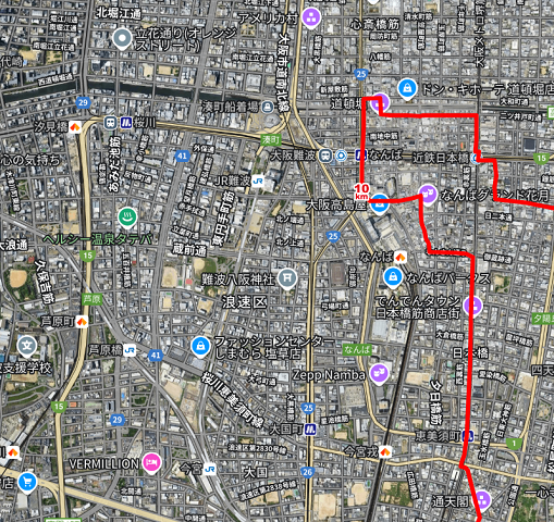 2025年4月19日(土)、第2回ディープ大阪104㌔ウォークに参加しました。大阪なんば、大阪高島屋、でんでんタウンなどで撮った写真の一部を紹介します。↓ 南海なんば駅。↓ NAMBA。↓ なんば高島屋。↓ なんば南海通。↓ なんばグランド花月。↓ 道具屋筋。↓ 堺筋。↓ 高島屋東別館。↓ 5階商店街。↓ でんでんタウン付近。