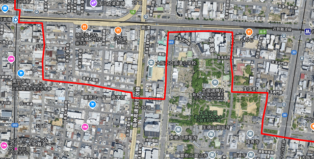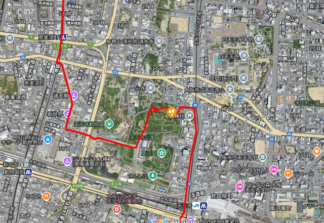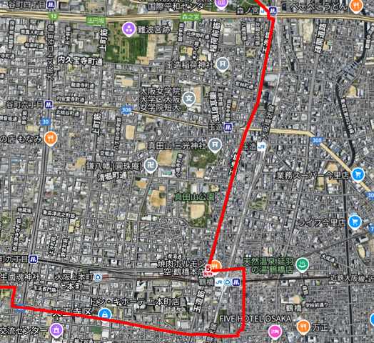 2025年4月19日(土)、第2回ディープ大阪104㌔ウォークに参加しました。森ノ宮駅、鶴橋駅、真田山、谷町筋まで、撮った写真の一部を紹介します。↓ JR森ノ宮駅。↓ 玉造商店街。↓ 真田山。↓ この公園の奥側に「真田丸」があったとされる。1614年の大坂夏の陣で、豊臣方の真田信繁(幸村)が大阪城の出城として真田丸を造り、徳川方と戦った。↓ 舟橋町。↓ JR鶴橋駅。↓ 鶴橋商店街。↓ 右 信貴山。 左 吉野。↓ 谷町筋。