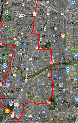 2025年4月19日(土)、第2回ディープ大阪104㌔ウォークに参加しました。第2チェックポイント(31キロ地点)の大仙公園(仁徳天皇陵)から住吉大社そばを通り、北加賀屋の第3チェックポイント(42キロ地点)までの写真を一部紹介します。↓ 大仙公園の竜佐山古墳(たつさやまこふん)。↓ 狐山古墳(きつねやまこふん)。↓ 阪神高速15号堺線。↓ 阪堺電車。↓ 堺鐵砲の碑。↓ 戒公園↓ 大和川。↓ 南海電鉄本線車両と、阪神高速15号堺線。↓ 大和川を渡る。↓ 安立本通り。↓ 一寸法師ゆかりの町 安立商店街。一寸法師 あんりゅーくん。針を売る店が多くあり、一寸法師の刀である針は、こちらの店の針だったとの話。↓ 阪堺電車。↓ 住吉大社。↓ 南海電鉄・住吉大社駅。↓ 住吉公園。↓ 常夜灯。↓ 第3チェックポイント セブンイレブン北加賀屋5丁目店。(42キロ地点)↓ カップラーメンを頂く。