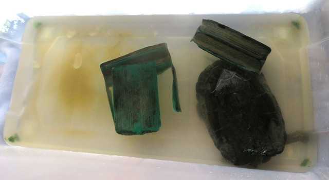 我が家のカメですが、2025年は6月14日に1回目の産卵をしました。卵は4個でした。その後、2025年7月15日の朝、カメが今年2回目の卵を1個産み、食べていました。卵が一つだけだったので、近いうちに残りを沢山産むだろうと予想しました。2025年7月17日の早朝、カメの水槽を見ると、カメが卵を4個産んでいました。後ろ脚を一生懸命に前後に動かしていたので、産卵途中だと分かりました。肛門から卵がでるところは撮影できなかったのですが、カメの体の下から新しい卵が出てきました。結局全部で6個の卵でした。カメは産卵後、すぐに産んだ卵を食べていきます。それは次回に紹介します。ーーーーーーーーーーーーー↓ 2025年7月15日 6時16分。2025年で2回目の産卵。カメが卵を1つ産み、すでに食べていた。↓ カメが卵を食べ、殻が残っていた。↓ カメの体に、卵の白身が付着していた。ーーーーーーーーーーーーーーーーーー2025年7月17日 4時42分。2025年で3回目の産卵。最終的に6個産んだ。↓ 卵が4個見える。↓ カメが右後ろ脚を、前後に激しく動かした。↓ カメの足もとに5個目の卵が現れた。↓ その後、カメの体の下から6個目の卵が現れた。↓ 全部で6個の卵を産んだ。6個の卵の長さは、カメの体と同じくらいの長さ。カメはお腹を膨らますことができないのに、よく6個も卵を体内に入れていたと驚く。