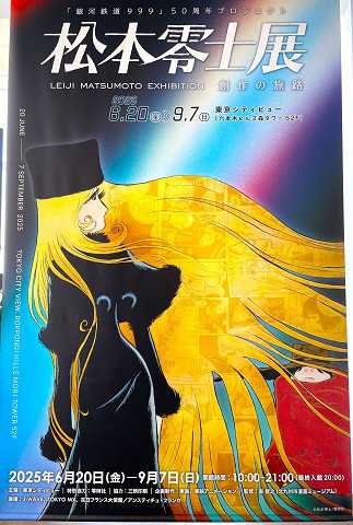 2025年8月14日、六本木ヒルズ森タワー52階の東京シティービューで、『「銀河鉄道999」50周年プロジェクト 松本零士展 創作の旅路』を見ました。会場では、映画「銀河鉄道999」の有名な、鉄郎とメーテルが別れていくシーンがプロジェクターで大きく映し出され、何度も繰り返して眺めました。私が小学6年生の時、行きつけのお好み焼き屋に置いてある「少年キング」で、初めて「銀河鉄道999」の第一話を読んだ衝撃が忘れられません。初々しいメーテルの絵が大好きで、コミックスが発売されると、すぐに購入して読みふけりました。中学2年の夏、映画「銀河鉄道999」の封切り日、先着で映画のセルがもらえるという事で、深夜から映画館前の行列に並びました。頂いた袋から出したセルは、残念ながらメーテルではなく機関車999号でした。映画の最後にある鉄郎とメーテルの別れのシーンを見て、ゴダイゴの「銀河鉄道999」の主題歌が流れると、会場のみんなが歌い始めたことを思い出します。ーーーーーーーーー↓ 2025年8月14日 『「銀河鉄道999」50周年プロジェクト 松本零士展 創作の旅路』六本木ヒルズ森タワー52階の東京シティービュー。↓ メーテル。↓ 松本零士さん。↓ 六本木ヒルズ森タワー。