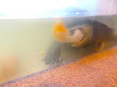 2025年7月17日早朝、我が家のカメが6個卵を産んだ後、早速卵の殻を嚙み割り、中の黄身を夢中で食べました。卵を食べる様子を写真に撮ったので、一部を紹介します。
